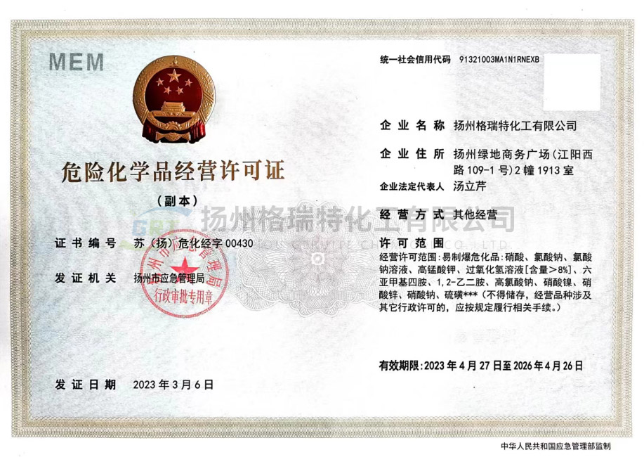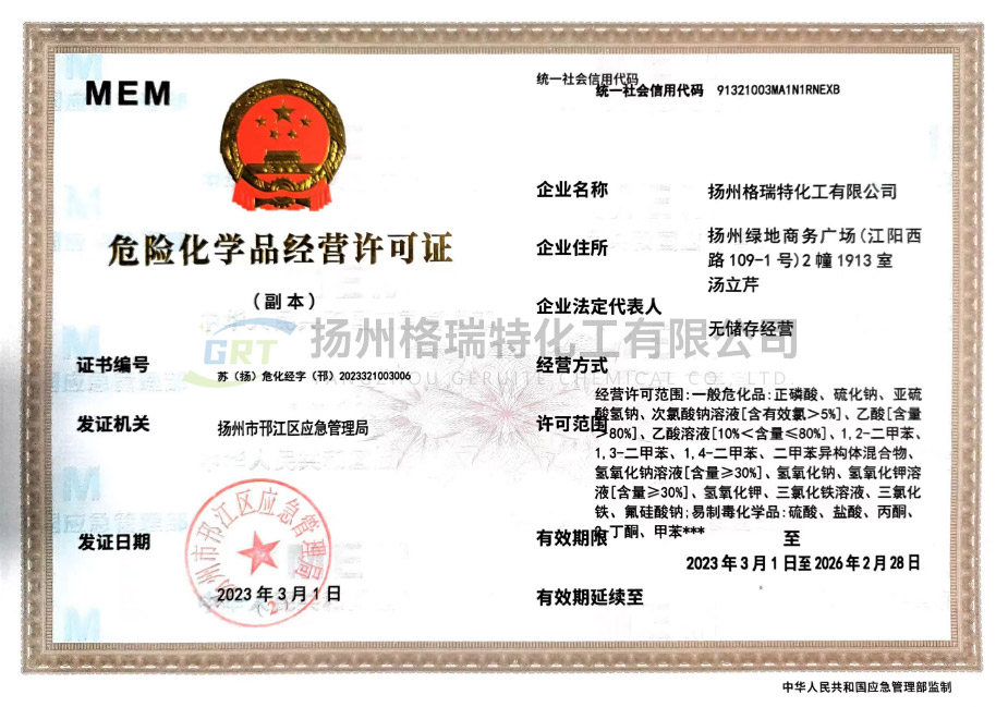 揚州格瑞特化工有限公司生產工廠坐落于江蘇省海安縣胡集工業園區和海安精細化工工業園??偣境闪⒂?999年,是集科、工、貿為一體的現代化生產型企業。專業致力于水處理劑、紡織印染助劑、化纖油劑等產品的科研、開發、生產和銷售。總公司占地面積40000m,建有現代化標準廠房,擁有先進的生產設備。年產各類水處理劑系列產品12000噸,紡織印染助劑5000噸,產品12個系列40多個品種。總公司注重技術投入,設立產品研發中心和環保運營中心,聘請了多位專家為公司技術顧問,并和多個重點院校建立了長期技術合作開發關系,是南通大學、江南大學、南京工業大學產學研基地。